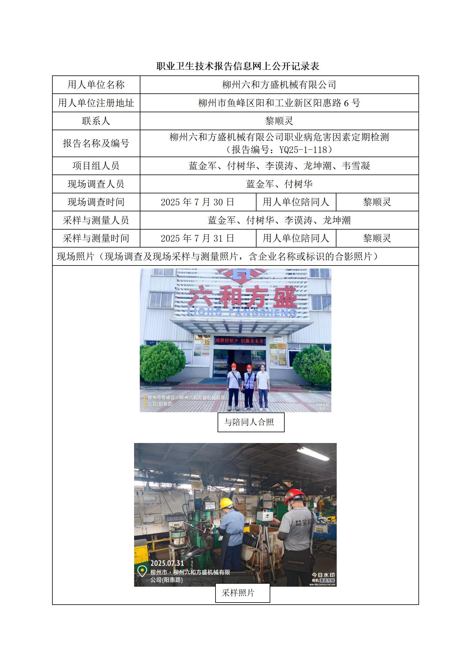 柳州六和方盛機械有限公司職業病危害因素定期檢測
