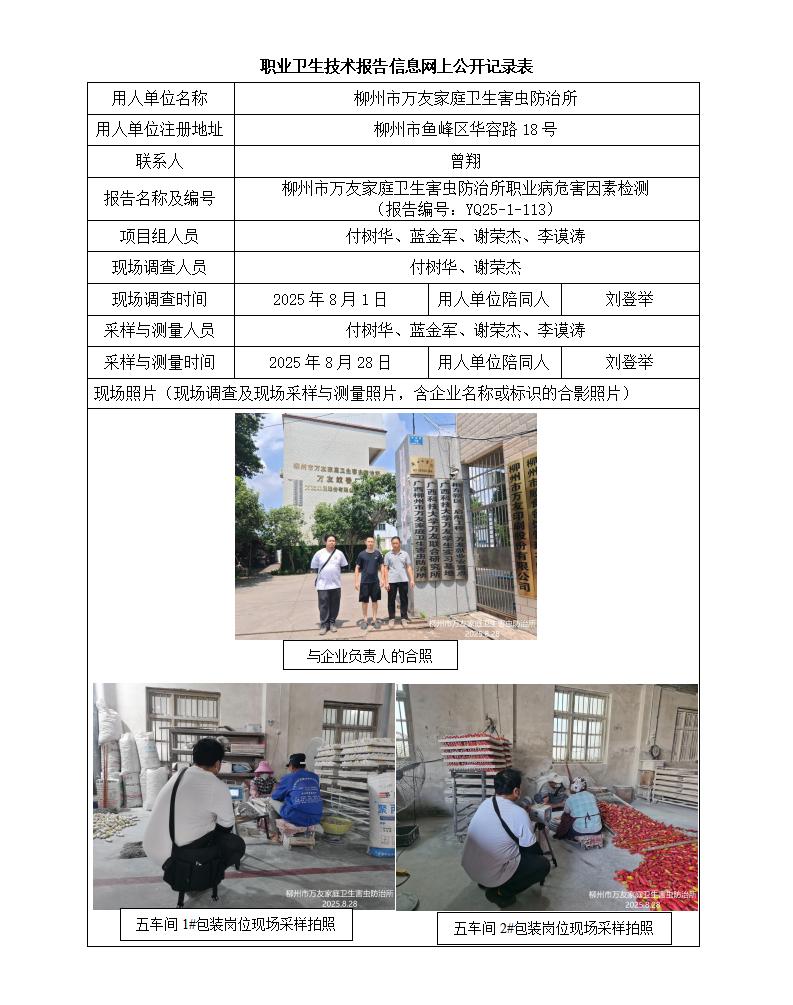 柳州市萬(wàn)友家庭衛(wèi)生害蟲(chóng)防治所職業(yè)病危害因素檢測(cè) (報(bào)告編號(hào):YQ25-1-113)